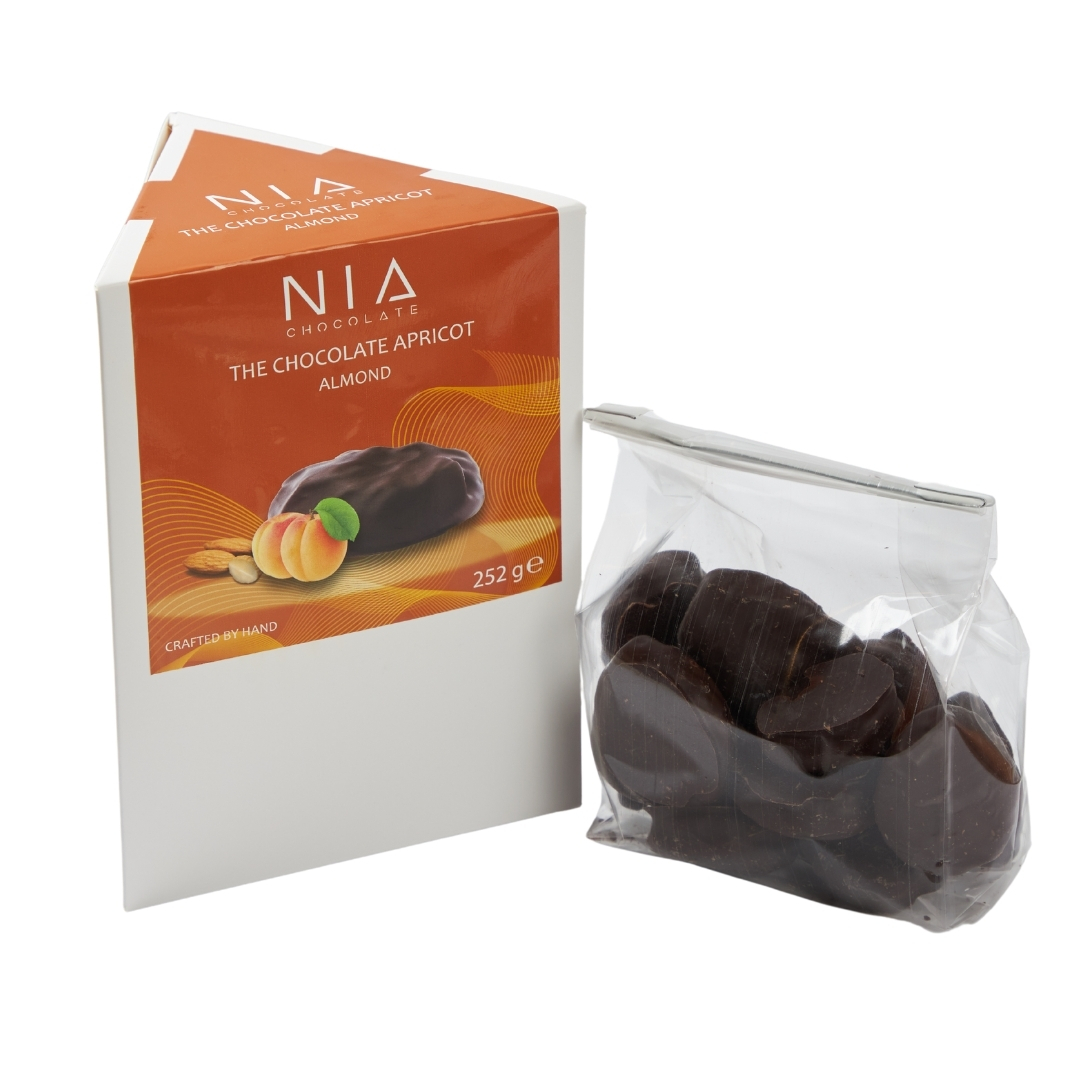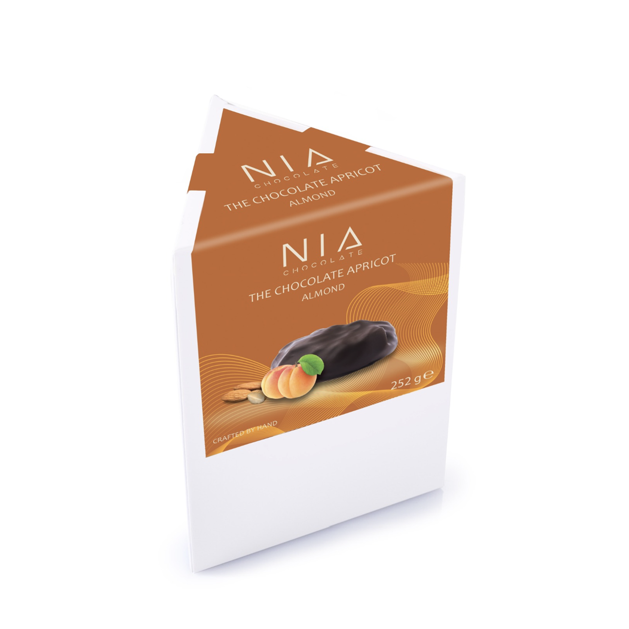 "To reach the pinnacle of taste, the sun-dried apricots from Malatya are coated with Belgian chocolate and filled with Datça Almonds for an exquisite flavor!"